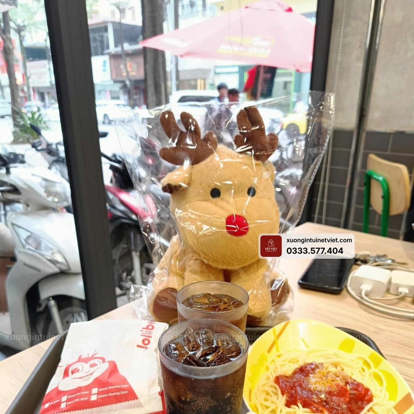 Tuần lộc bông Jolibee mã 2025 được thiết kế theo tinh thần vui tươi của mùa lễ hội, mang lại cảm giác ấm áp và thân thiện ngay từ cái nhìn đầu tiên. Dáng tuần lộc tròn trịa, đôi sừng mềm, gương mặt dễ thương và bảng màu Giáng Sinh khiến sản phẩm nổi bật trong mọi không gian trưng bày. Đây là mẫu quà tặng phù hợp cho trẻ nhỏ, khách hàng, đối tác hoặc dùng làm vật trang trí theo chủ đề noel.