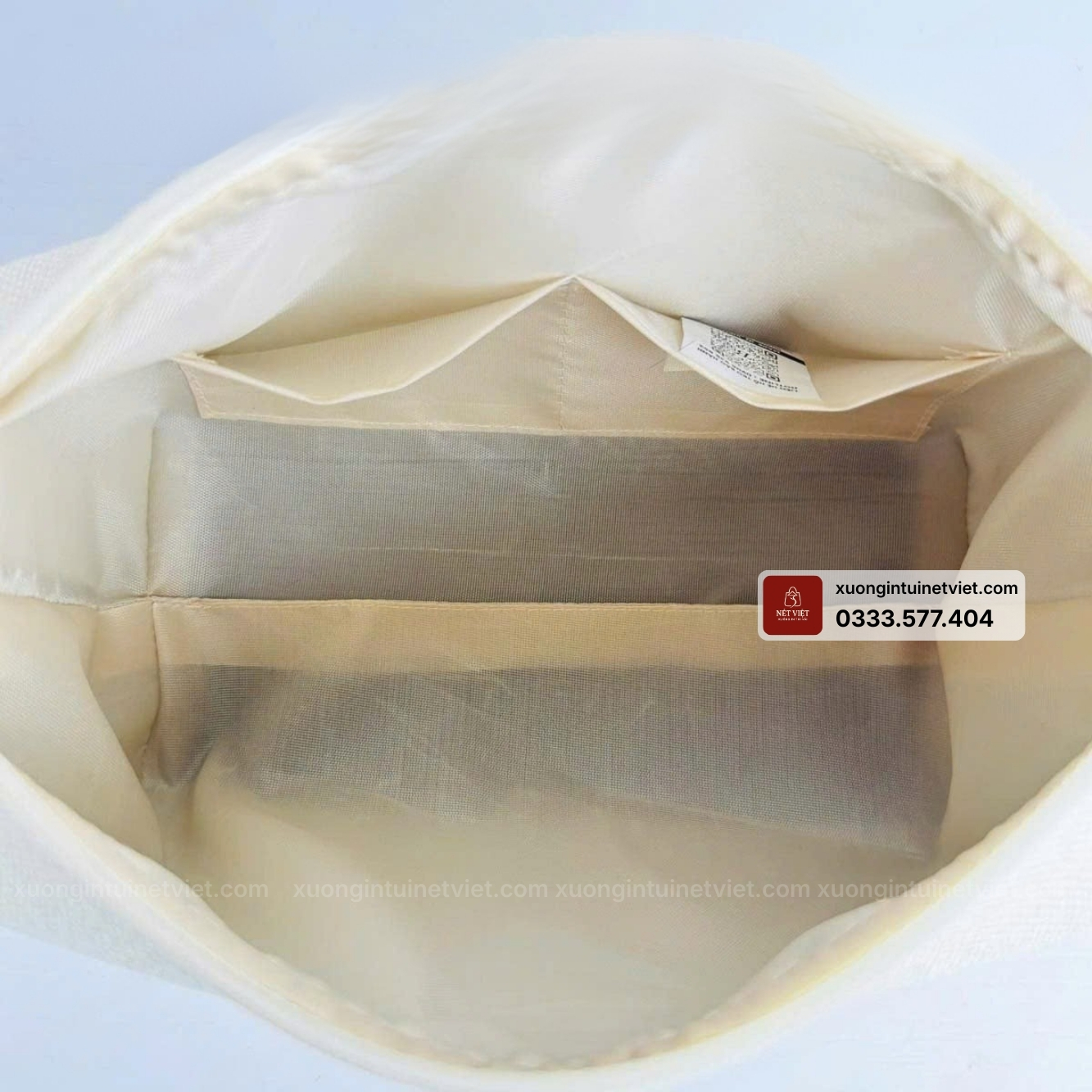 Toàn bộ đường may được thực hiện tại xưởng với tiêu chuẩn kiểm soát chặt chẽ. Các mũi may thẳng, đều, khóa viền kỹ ở những điểm chịu lực giúp túi giữ form tốt và không bị bung chỉ sau thời gian dài sử dụng. Phần khóa kéo được lựa chọn loại trơn, đóng mở mượt, đảm bảo trải nghiệm sử dụng thoải mái.