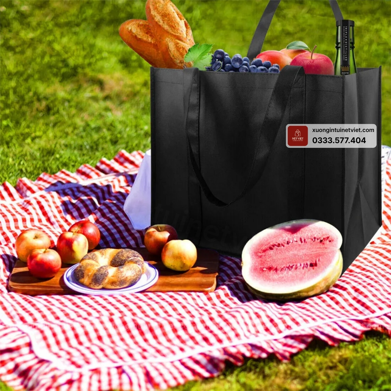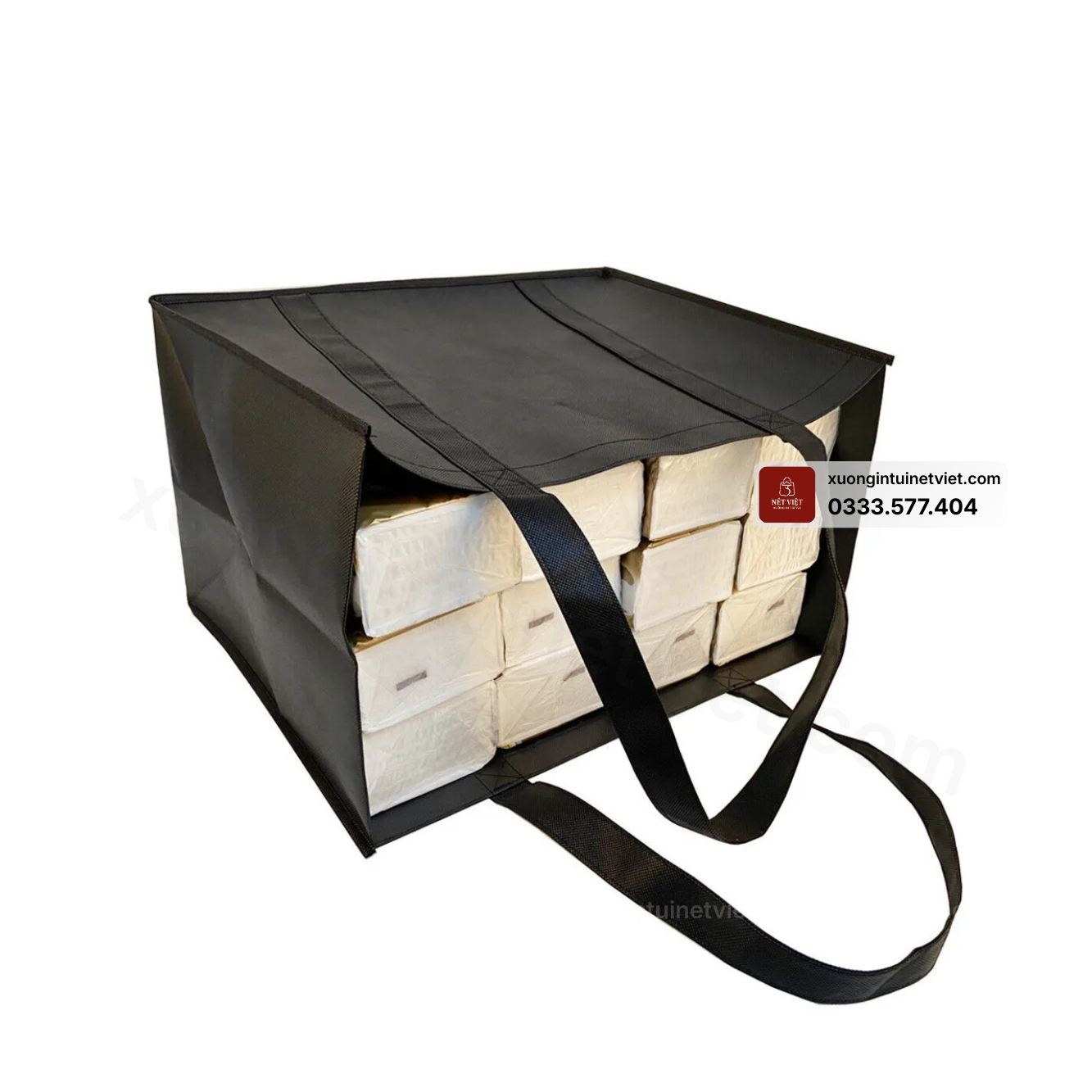 Chất liệu non-woven dày được Nét Việt chọn lọc kỹ, bề mặt mịn, màu lên chuẩn, chịu lực tốt và có thể tái sử dụng nhiều lần. Độ dày vải được cân chỉnh tùy mục đích sử dụng, đảm bảo túi đạt độ bền cao nhưng vẫn giữ tính thẩm mỹ và mức giá hợp lý. Đây cũng là chất liệu thân thiện môi trường, rất phù hợp xu hướng quà tặng xanh của các doanh nghiệp hiện nay.